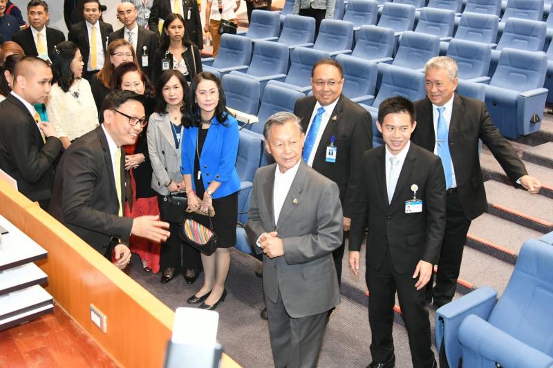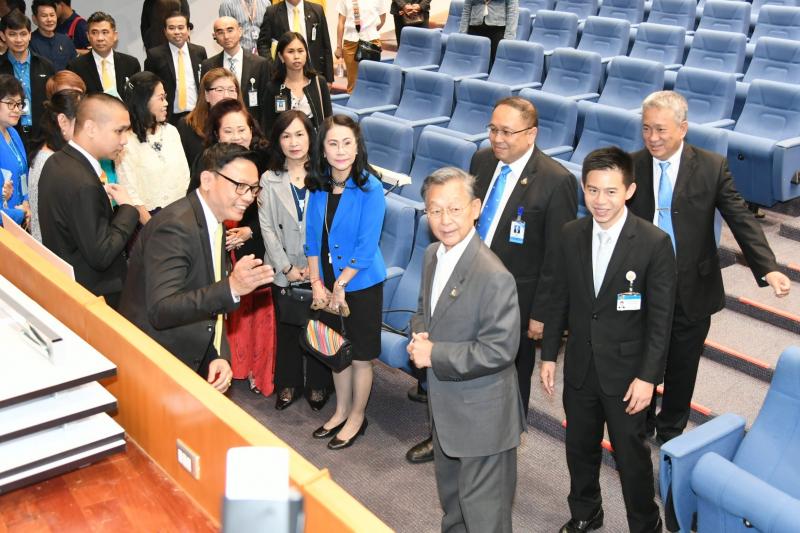| วันพฤหัสบดีที่ ๑ สิงหาคม ๒๕๖๒ เวลา ๑๓.๓๐ นาฬิกา ณ อาคาร ๙ ชั้น ๒ บริษัท ทีโอที จำกัด (มหาชน) นายชวน หลีกภัย ประธานสภาผู้แทนราษฎร นายสรศักดิ์ เพียรเวช เลขาธิการ สภาผู้แทนราษฎร พร้อมด้วยคณะผู้บริหารสำนักงานเลขาธิการสภาผู้แทนราษฎร ตรวจความเรียบร้อย ในการเคลื่อนย้ายอุปกรณ์ต่าง ๆ จากบริษัท ทีโอที จำกัด (มหาชน) เพื่อนำไปติดตั้งยังอาคารรัฐสภา เกียกกาย ซึ่งจะใช้เป็นสถานที่สำหรับประชุมสภาผู้แทนราษฎร อย่างเป็นทางการในสัปดาห์หน้า พร้อมรับฟังรายงานการสรุปการใช้พื้นที่ของบริษัท ทีโอที จำกัด (มหาชน) จากคณะผู้บริหารของบริษัทฯ โดยประธานสภาผู้แทนราษฎร ได้กล่าวแสดงความขอบคุณ นายมนต์ชัย หนูสง กรรมการผู้จัดการใหญ่ และคณะผู้บริหาร บริษัท ทีโอที จำกัด (มหาชน) ที่ได้เอื้อเฟื้อสถานที่ในการประชุมสภาผู้แทนราษฎร และการประชุมร่วมกันของรัฐสภา ที่ผ่านมา และยังให้การดูแลเป็นอย่างดี จนทำให้การประชุมเป็นไปด้วย ความเรียบร้อย ในโอกาสนี้ กรรมการผู้จัดการใหญ่ฯ ได้กล่าวชื่นชมประธานสภาผู้แทนราษฎรที่ทำหน้าที่ประธาน การประชุมได้อย่างดีเยี่ยมทำให้การประชุมเป็นไปด้วยดี และเป็นที่ประจักษ์ของประชาชน โอกาสนี้ คณะผู้บริหารบริษัท ทีโอที จำกัด (มหาชน) ได้มอบของที่ระลึกให้แก่ประธานสภาผู้แทนราษฎร และคณะ เพื่อแสดงความขอบคุณ จากนั้น ประธานสภาผู้แทนราษฎร ได้ให้สัมภาษณ์สื่อมวลชน ถึงความพร้อมของอาคารรัฐสภา เกียกกาย ว่าโดยรวมแล้วมีความพร้อมสำหรับใช้ในการประชุมมากขึ้น โดยเบื้องต้นห้องประชุมจันทรามีเก้าอี้ จำนวน ๓๕๐ ตัว จึงได้สั่งเสริมอีก ๑๕๐ ตัว เพื่อให้เพียงพอกับจำนวนสมาชิกสภาผู้แทนราษฎร ซึ่งในวันนี้ มีการทดสอบระบบเครื่องลงคะแนน เพื่อเตรียมพร้อมสำหรับการประชุม ในส่วนของค่าใช้จ่ายสำหรับเช่า สถานที่บริษัท ทีโอที จำกัด (มหาชน) นั้นไม่เกินงบประมาณ เนื่องจากได้รับความอนุเคราะห์เป็นอย่างดี จากบริษัทฯ โดยยืนยันว่าได้ใช้งบประมาณอย่างคุ้มค่าและประหยัดมากที่สุด ทั้งนี้ คาดว่าร่างพระราชบัญญัติ งบประมาณฯ จะเข้าสู่การพิจารณาประมาณกลางเดือนตุลาคมนี้