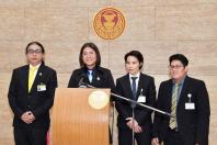 เกียกกาย นายธัญญ์วาริน สุขะพิสิษฐ์ สมาชิกสภาผู้แทนราษฎรพรรคอนาคตใหม่ และคณะ แถลงข่าว