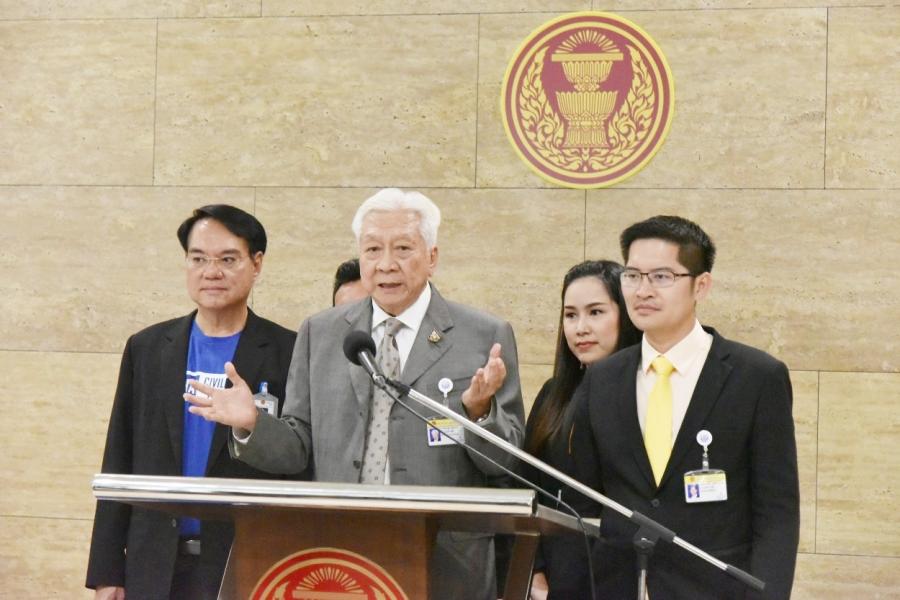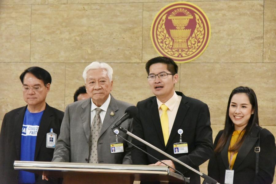 สมาชิกสภาผู้แทนราษฎรพรรคประชาธรรมไทยและสมาชิกสภาผู้แทนราษฎรพรรคไทยศรีวิไลย์ แถลงข่าวร่วมกัน