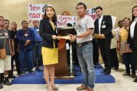ราษฎรพรรคร่วมฝ่ายค้าน รับยื่นหนังสือ จากนายจร เนาวโอภาส ตัวแทนต่อต้านบ่อขยะ