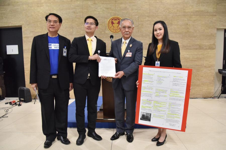 เกียกกาย นายมงคลกิตติ์ สุขสินธารานนท์ สมาชิกสภาผู้แทนราษฎรพรรคไทยศรีวิไลย์ รับยื่น