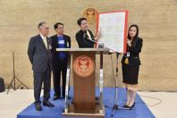 นายมงคลกิตติ์ สุขสินธารานนท์ สมาชิกสภาผู้แทนราษฎรพรรคไทยศรีวิไลย์ รับยื่นหนังสือจากหุ้นส่วนผู้จัดการบริษัท THAKO Service Co. Ltd