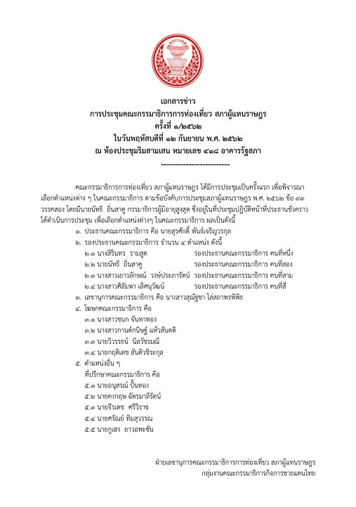 ผลการประชุมคณะกรรมาธิการการท่องเที่ยว ภายหลังการประชุมครั้งแรก เพื่อพิจารณาเลือก