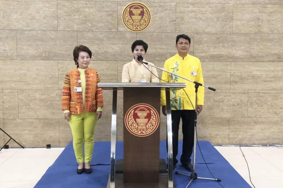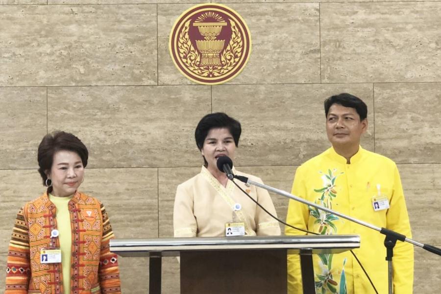 นางสาวศรีนวล บุญลือ สมาชิกสภาผู้แทนราษฎรพรรคอนาคตใหม่ แถลงข่าว เชิญชวนให้ทุกคนแต่งกายด้วยชุดพื้นเมืองประจำจังหวัด