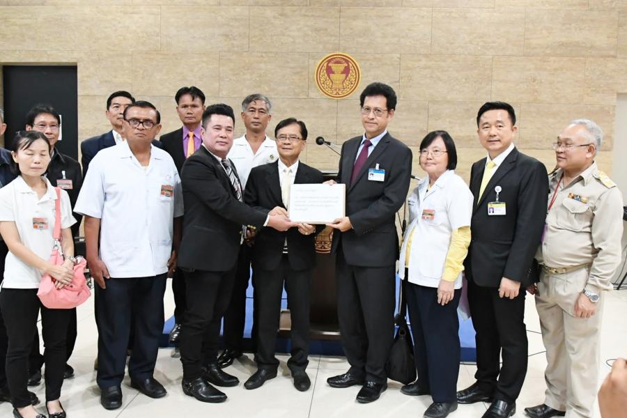 นพ.สุกิจ อัถโถปกรณ์ ที่ปรึกษาประธานสภาผู้แทนราษฎร รับยื่นร่าง พ.ร.บ.ยาแผนไทย พ.ศ. .... จากตัวแทนผู้ประกอบวิชาชีพการแพทย์แผนไทย