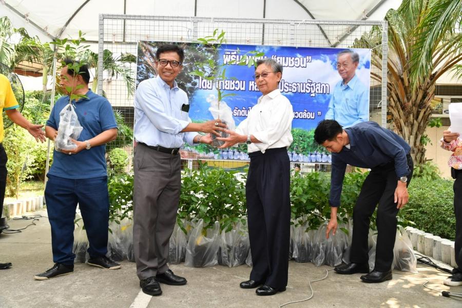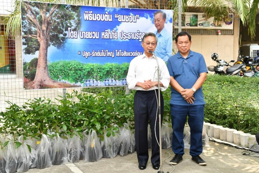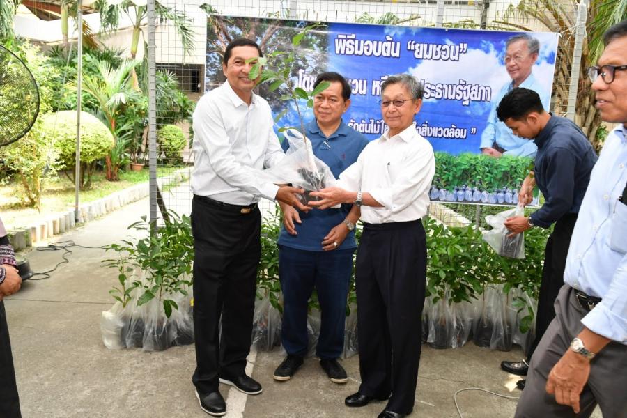 นายชวน หลีกภัย ประธานรัฐสภา เป็นประธานในพิธีมอบต้น ยมชวน เพื่อรณรงค์ ปลูก รักต้นไม้ใหญ่