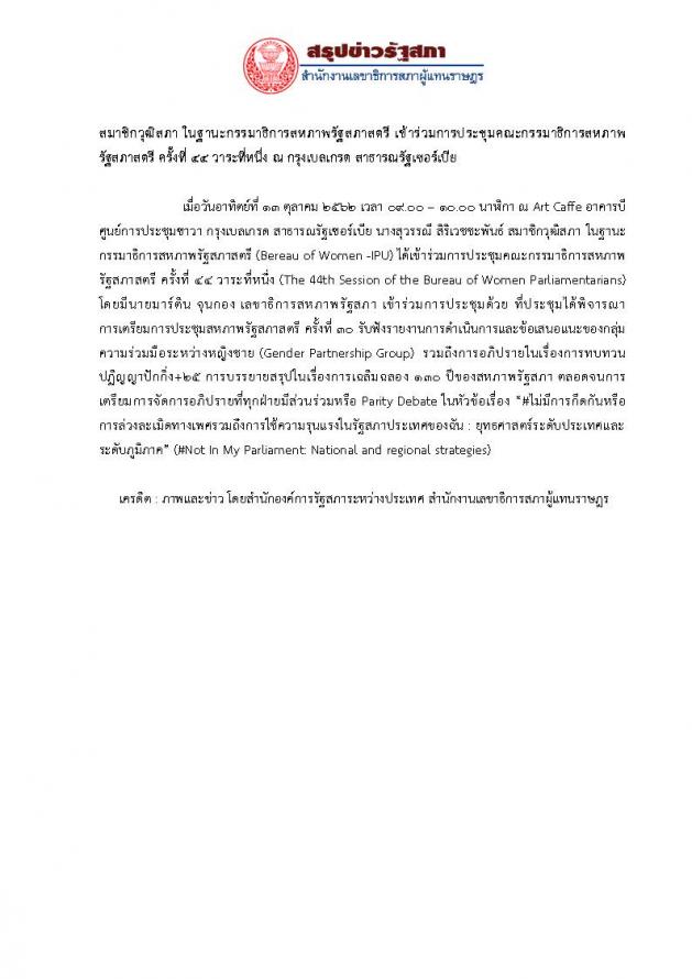 เครดิต : ภาพและข่าว โดยสำนักองค์การรัฐสภาระหว่างประเทศ สำนักงานเลขาธิการสภาผู้แทนราษฎร