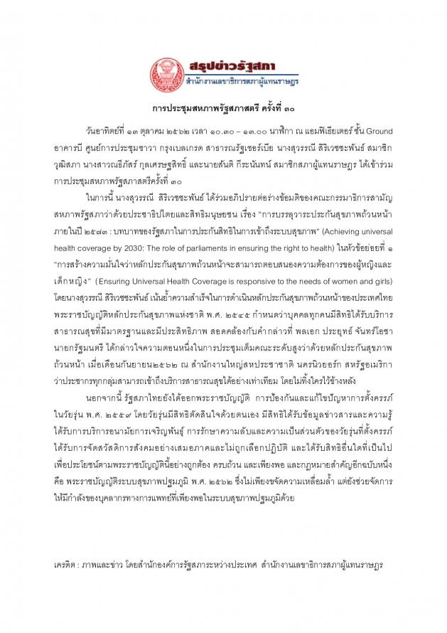 เครดิต : ภาพและข่าว โดยสำนักองค์การรัฐสภาระหว่างประเทศ สำนักงานเลขาธิการสภาผู้แทนราษฎร