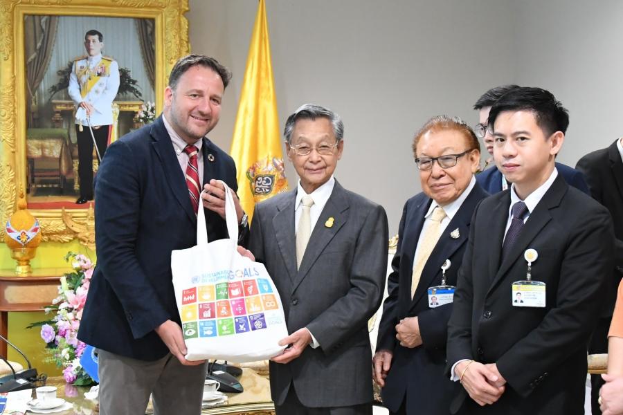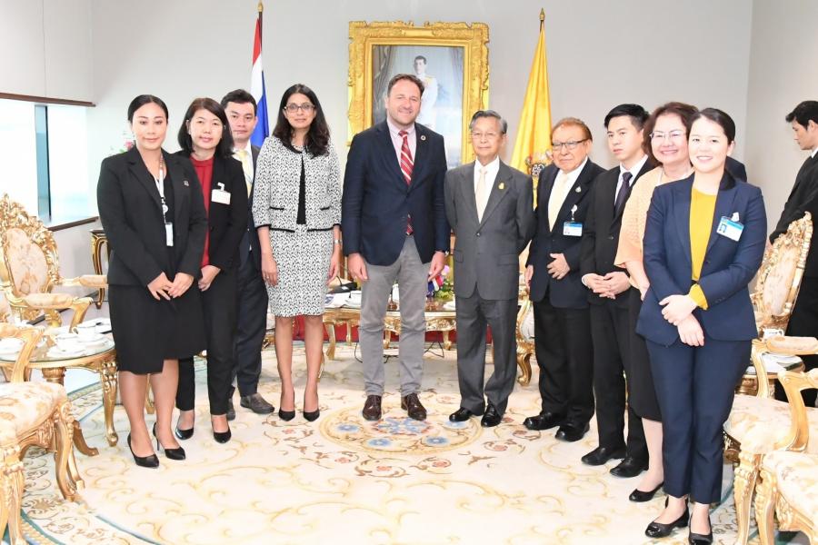 | วันพุธที่ ๓๐ ตุลาคม ๒๕๖๒ เวลา ๑๐.๐๐ นาฬิกา ณ ห้องรับรอง ชั้น ๔ อาคารรัฐสภา เกียกกาย นายชวน หลีกภัย ประธานสภาผู้แทนราษฎร ให้การรับรอง นายเรอโน เมแยร์ (Mr.Renaud Mayer) ผู้แทนโครงการพัฒนาแห่งสหประชาชาติ (United Nations Development Programme : UNDP) ประจำประเทศไทย ในโอกาสเข้าเยี่ยมคาราวะเพื่อหารือแลกเปลี่ยนความคิดเห็นเกี่ยวกับงานของ สหประชาชาติ ที่เชื่อมโยงกับงานของรัฐสภาไทย รวมทั้งการเพิ่มขีดความสามารถและบทบาทรัฐสภา ในการบรรลุเป้าหมายการพัฒนาที่ยั่งยืน โดยนายชวน หลีกภัย ได้กล่าวต้อนรับ ผู้แทนโครงการฯ และคณะ พร้อมทั้งกล่าวยินดีที่ได้ร่วมแลกเปลี่ยนความคิดเห็นในฐานะตัวแทนภาครัฐสภา ในการนี้ นายเรอโน เมแยร์ ได้กล่าวขอบคุณและกล่าวแสดงความเชื่อมั่นว่ารัฐสภาไทยจะร่วม ผลักดันการดำเนินงานตามเป้าหมายการพัฒนาที่ยั่งยืนของสหประชาชาติ เพื่อเป็นแนวทางไปสู่ ความร่วมมือด้านต่าง ๆ ในอาเซียน และเป็นประโยชน์ต่อประชาชนในอนาคต และหวังว่าในการประชุม สุดยอดอาเซียน ครั้งที่ ๓๕ ที่ประเทศไทยจะเป็นเจ้าภาพจัดขึ้นในเดือน พ.ย. ๖๒ จะได้ข้อมติที่สนับสนุน เรื่องการพัฒนาที่ยั่งยืนให้บรรลุผลสำเร็จ