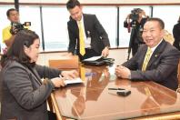 เกียกกาย นายเผดิมชัย สะสมทรัพย์ ส.ส.จังหวัดนครปฐม พรรคชาติไทยพัฒนา รายงานตัว