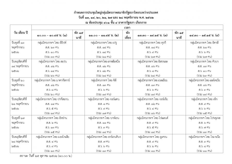 การประชุมใหญ่กลุ่มมิตรภาพ เพื่อเลือกตั้งคณะกรรมการบริหาร จำนวน 36 กลุ่ม ในเดือนพฤศจิกายน-ธันวาคม 2562