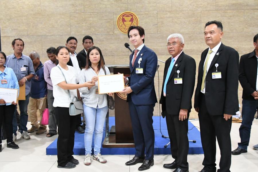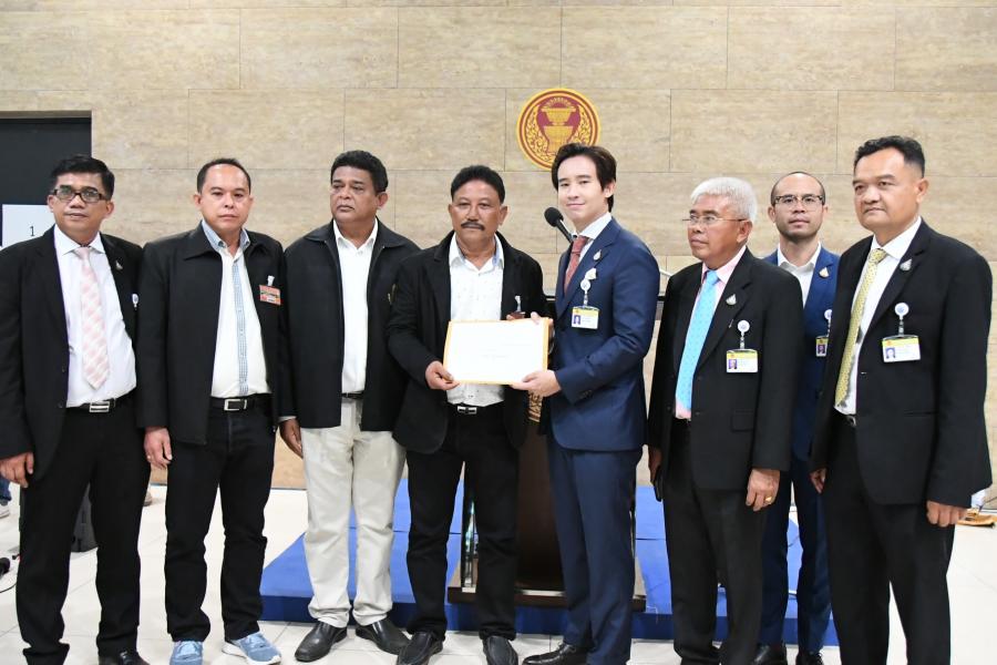 นายพิธา ลิ้มเจริญรัตน์ ประธานคณะกรรมาธิการการที่ดิน ทรัพยากรธรรมชาติและสิ่งแวดล้อม รับหนังสือ