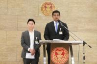 นายชัยชนะ เดชเดโช และนายอรรถกร ศิริลัทยากร โฆษกคณะ กมธ.พิจารณาร่าง พ.ร.บ. งบประมาณรายจ่าย พ.ศ. ๒๕๖๓ แถลงข่าว