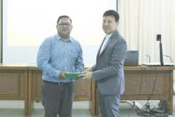 ในการนี้นายโอชิษฐ์ เกียรติก้องชูชัย ได้มอบของที่ระลึก แก่ผู้อำนวยการโรงเรียนแก้งคร้อวิทยา และวิทยากร |