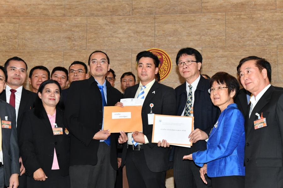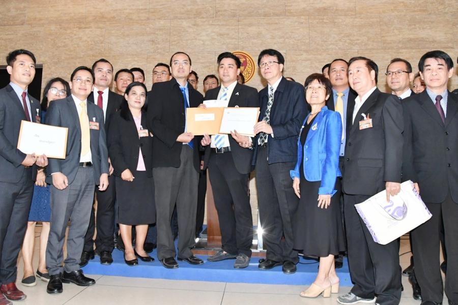เลขานุการคณะทำงานทางการเมืองของประธานสภาผู้แทนราษฎร รับหนังสือจากประธานสภาคณาจารย์และข้าราชการแห่งประเทศไทย และคณะ เพื่อขอให้ช่วยแก้ไขปัญหาความเหลื่อมล้ำของบุคลากรมหาวิทยาลัยทั่วประเทศ