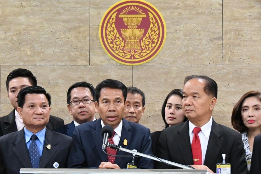 ประธานวิปฝ่ายค้าน พร้อมด้วย ส.ส.พรรคร่วมฝ่ายค้าน แถลงข่าวผลการประชุมวิปฝ่ายค้าน