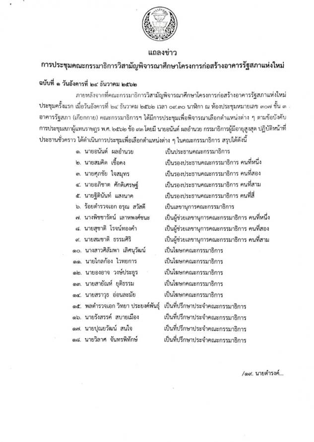จะเป็นการพิจารณาในภาพรวมการก่อสร้างอาคารรัฐสภาแห่งใหม่ และจะมีการประชุมครั้งต่อไปในวันพุธที่ ๗ ม.ค.๖๓