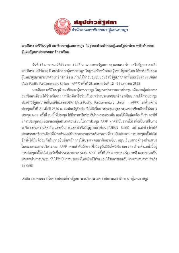 ภาคพื้นเอเชียและแปซิฟิก (Asia-Pacific Parliamentary Union - APPF) ครั้งที่ ๒๘ ระหว่างวันที่