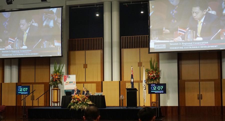 Parliamentary  Union - APPF) ครั้งที่ ๒๘ โดยเน้นว่าได้มีการรับรองและดำเนินตามหลักการการพัฒนา