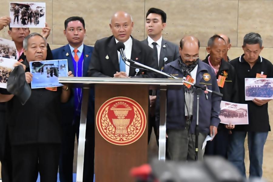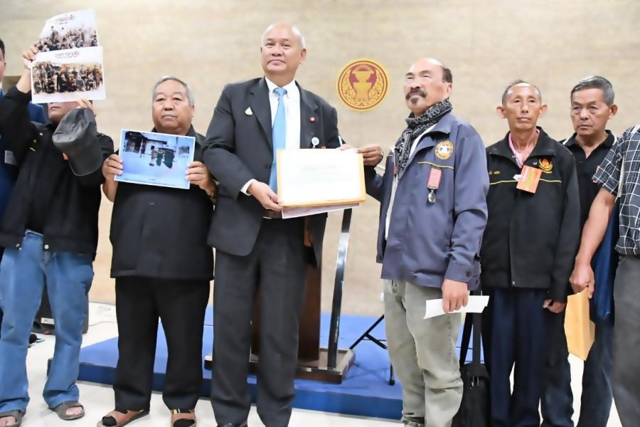 ประธานคณะกรรมาธิการความมั่นคงแห่งรัฐ กิจการชายแดนไทย ยุทธศาสตร์ชาติและการปฏิรูปประเทศ รับยื่นหนังสือจาก รองประธานชมรมทหารผ่านศึกบ้านเข็กน้อย อ.เขาค้อ จ.เพชรบูรณ์ และคณะ เพื่อทวงถามสัญญาจากรัฐบาลซึ่งจะจัดสรรที่ดินทำกินและที่อยู่อาศัยให้กับชาวบ้านที่เคยเข้าร่วมเป็นกองร้อยชาวเขาอาสาสมัคร