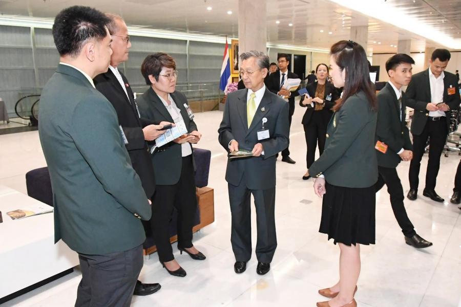 ชั้น ๒ อาคารรัฐสภา เกียกกาย นายชวน หลีกภัย ประธานสภาผู้แทนราษฎร เยี่ยมชมการจัดบูธ