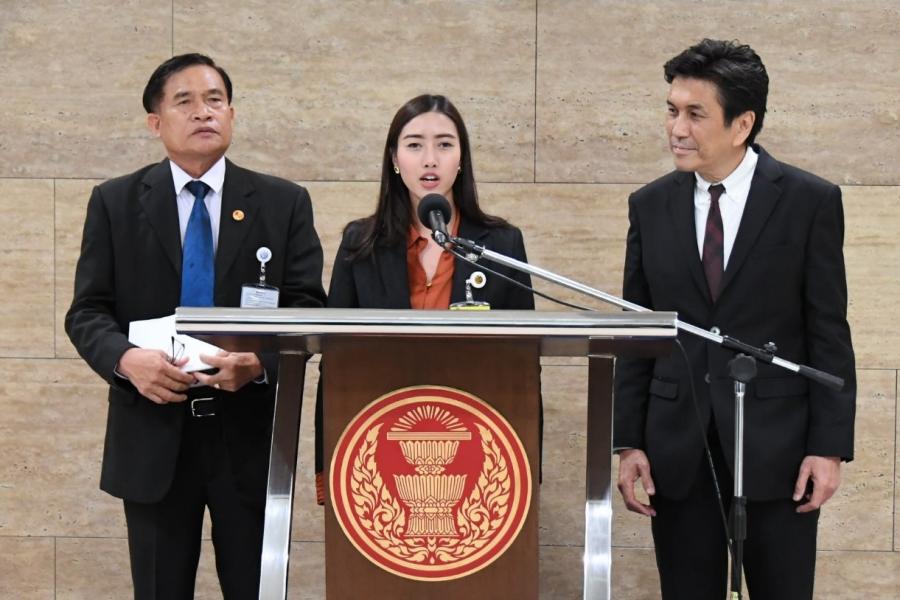 เกียกกาย นายประกอบ รัตนพันธ์ และน.ส.เพชรชมพู กิจบูรณะ โฆษกคณะกรรมาธิการวิสามัญ