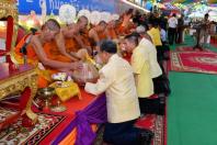ประธานฝ่ายสงฆ์ และนายสุจินต์ ไชยชุมศักดิ์ ผู้ว่าราชการจังหวัดนนทบุรี ร่วมกดแพร