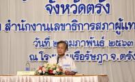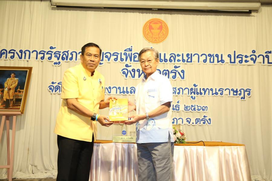 วันเสาร์ที่ ๒ กุมภาพันธ์ ๒๕๖๓ เวลา ๑๓.๐๐ นาฬิกา ณ ห้องนคราแกรนด์ บอลรูม โรงแรมรัษฎา อำเภอเมือง จังหวัดตรัง นายชวน หลีกภัย ประธานรัฐสภา และประธานสภาผู้แทนราษฎร เป็นประธานในพิธีเปิดกิจกรรมโครงการรัฐสภาสัญจร เพื่อเด็กและเยาวชน ประจำปี ๒๕๖๓ ภาคใต้และให้เกียรติปาฐกถาพิเศษ เรื่อง การมีส่วนร่วมของคนรุ่นใหม่กับการเมืองสุจริต โดยมี นายลือชัย เจริญทรัพย์ ผู้ว่าราชการจังหวัดตรัง กล่าวต้อนรับและ น.ส.โสมอุษา บูรณะเหตุ รองเลขาธิการ สภาผู้แทน ราษฎร กล่าวรายงานวัตถุประสงค์การจัดกิจกรรม โดยมีนายสาทิตย์ วงศ์หนองเตย สมาชิกสภาผู้แทนราษฎรและแขกผู้มีเกียรติ ร่วมพิธี ในการนี้ ประธานรัฐสภากล่าวปาฐกถาใจความตอนหนึ่งว่า ขอให้เยาวชนนำเอา การศึกษาไปเป็นรากฐานในการพัฒนาตนเอง เห็นคุณค่าการศึกษาวิถีประชาธิปไตย จะนำมาซึ่งการพัฒนาในด้านต่าง ๆ ทั้งนี้ โครงการรัฐสภาสัญจรเพื่อเด็กและเยาวชน เป็นช่องทางหนึ่งของสำนักงานเลขาธิการสภาผู้แทนราษฎรซึ่งส่งเสริมให้เด็กและ เยาวชนเข้ามามีส่วนร่วมทางการเมือง โดยประธานรัฐสภา มีนโยบายพัฒนาการเมือง ที่สุจริต ใช้หลักการปกครองตามกฎหมาย หรือ หลัก Rule of Law เพื่อส่งเสริมให้ นักการเมืองมีพฤติกรรมที่ดี เพื่อให้ประชาชน มีความเชื่อมั่นในความสุจริต และเ ชื่อมั่นในระบอบประชาธิปไตย จากนั้นประธานรัฐสภามอบของที่ระลึกแด่ผู้ว่าราชการ จังหวัดตรัง
