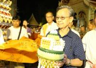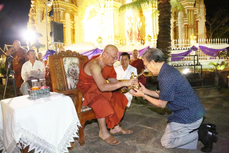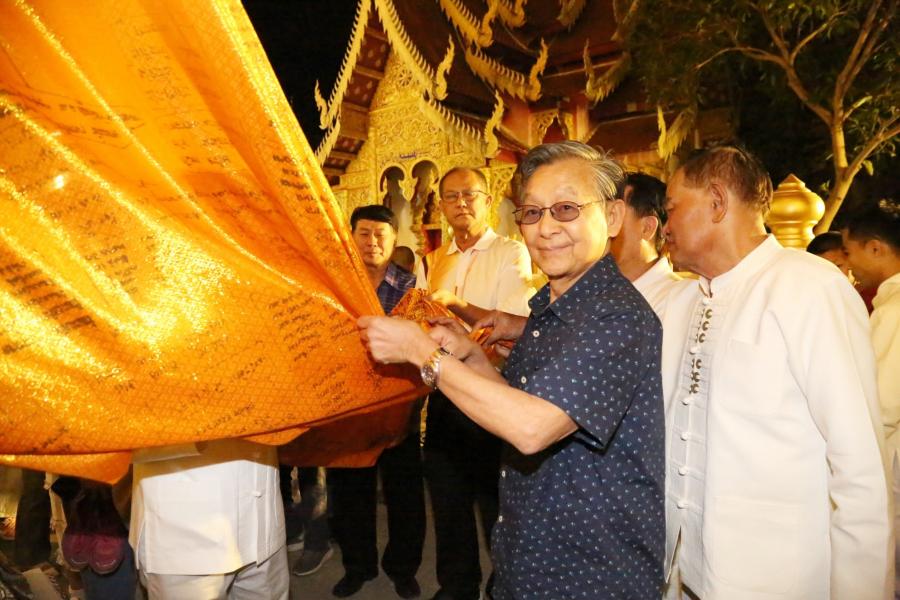 ในการนี้ นายชวน หลีกภัย ได้ร่วมพิธีแห่ผ้าขึ้นพระธาตุร่วมสวดมนต์บทสวดโอวาทปาฏิโมกข์