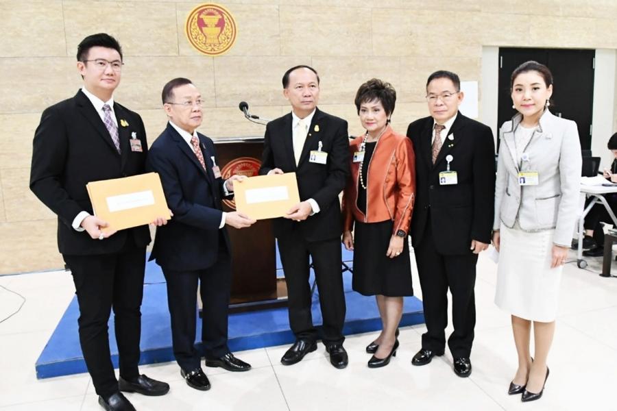 เทียนสุวรรณ โฆษกคณะ กมธ. และคณะ รับยื่นหนังสือจาก ม.ร.ว.จิราคม กิติยากร ประธานเครือข่าย
