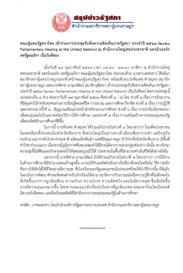 (๒๐๒๐ Parliamentary Hearing at the United Nations) เป็นวันที่สอง