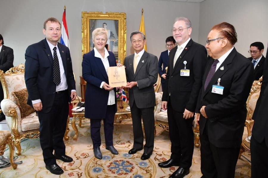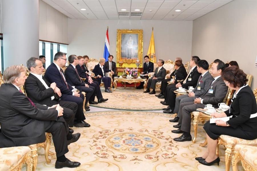 วันจันทร์ที่ ๒๔ กุมภาพันธ์ ๒๕๖๓ เวลา ๐๙.๓๐ นาฬิกา ณ ห้องรับรอง ชั้น ๔ อาคารรัฐสภา นายชวน หลีกภัย ประธานรัฐสภาและประธานสภาผู้แทนราษฎร ให้การรับรอง นางสาวเรนาเท่อ คูนาสท์ (Ms. Renate Künast) ประธานกลุ่มมิตรภาพสมาชิกรัฐสภาสหพันธ์สาธารณรัฐเยอรมนี-อาเซียน และคณะ ในโอกาสเข้าเยี่ยมคารวะ เพื่อกระชับความสัมพันธ์ระหว่างรัฐสภาของทั้งสองประเทศให้แน่นแฟ้น ยิ่งขึ้น นายชวน หลีกภัย กล่าวถึง ระบอบการปกครองในประเทศไทยว่า ตั้งแต่ในอดีตจนถึงปัจจุบัน ประเทศไทยได้ให้ความสำคัญกับประชาธิปไตย และมีการพัฒนาที่ดีขึ้นมาอย่างต่อเนื่อง พร้อมกล่าวถึง ความร่วมมือระหว่างสำนักงานเลขาธิการสภาผู้แทนราษฎรกับมูลนิธิคอนราดอาเดนาวร์ และองค์กร ความร่วมมือระหว่างประเทศของเยอรมนี โดยกล่าวขอบคุณมูลนิธิคอนราด อาเดนาวร์ ที่ได้ให้การสนับสนุน การดำเนินการโครงการต่าง ๆ ของสำนักงานเลขาธิการสภาผู้แทนราษฎรและรัฐสภาไทยมาโดยตลอด ๓๓ ปี ซึ่งเป็นความสัมพันธ์อันดียิ่ง และในปัจจุบันความสัมพันธ์ด้านรัฐสภาระหว่างไทย-เยอรมนี ได้มีการจัดตั้ง กลุ่มมิตรภาพสมาชิกรัฐสภาไทย-เยอรมนี โดยมีนายเกียรติ สิทธีอมร สมาชิกสภาผู้แทนราษฎร เป็นประธานกลุ่ม โดยได้ดำเนินกิจกรรมเพื่อส่งเสริมความสัมพันธ์ทวิภาคีระหว่างสมาชิกรัฐสภาทั้งสองประเทศต่อไป นางสาวเรนาเท่อ คูนาสท์ กล่าวว่า การจัดทำข้อตกลงการเปิดเสรีทางค้า (FTA) ระหว่างไทย-อียู และ อาเซียน-อียู จะช่วยส่งเสริมการค้า การลงทุนระหว่างภูมิภาค และเห็นพ้องร่วมกันที่จะกระชับความร่วมมือ ด้านการพัฒนาอุตสาหกรรมการประมง ระหว่างเยอรมันและไทย รวมถึงพัฒนาความร่วมมือด้านต่าง ๆ ในภูมิภาค อาเซียนด้วย