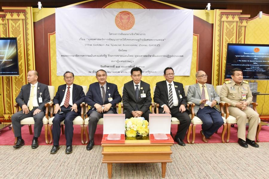 | วันอังคารที่ ๒๕ กุมภาพันธ์ ๒๕๖๓ เวลา ๐๘.๓๐ นาฬิกา ณ ห้องประชุม ๔๐๒ ๔๐๔ ชั้น ๔ อาคารรัฐสภา นายพิเชษฐ์ เชื้อเมืองพาน รองประธานคณะกรรมาธิการความมั่นคงแห่งรัฐกิจการ ชายแดนไทยยุทธศาสตร์ชาติ และการปฏิรูปประเทศ คนที่หนึ่ง เป็นประธานในพิธีเปิดการสัมมนาเรื่อง ยุทธศาสตร์การพัฒนาภาคใต้เขตเศรษฐกิจพิเศษขวานทอง : GASEZ จากนั้นเป็นการสัมมนาในหัวข้อ ยุทธศาสตร์การพัฒนาภาคใต้สู่เขตเศรษฐกิจพิเศษขวานทอง (The Golden Ax Special Economic Zone : GASEZ) โดยวิทยากรผู้ทรงคุณวุฒิ ประกอบด้วย นายพิเชษฐ์ เชื้อเมืองพาน รองประธานคณะ กมธ. ความมั่นคงแห่งรัฐกิจการชายแดนไทยยุทธศาสตร์ชาติและการปฏิรูปประเทศ คนที่หนึ่ง นายนพดล แก้วสุพัฒน์ ที่ปรึกษาคณะ กมธ. นายณรงค์ ขุ้มทอง และนายยงยศ แก้วเขียว คณะอนุ กมธ. ทั้งนี้ การจัดสัมมนาดังกล่าวมีวัตถุประสงค์เพื่อสร้างกลุ่มเครือข่ายการพัฒนาเขตเศรษฐกิจพิเศษ ขวานทองในการระดมความรู้ ความคิด ประสบการณ์ ความเชี่ยวชาญจากบุคคลทุกกลุ่มสาขาอาชีพ ทุกองค์กรทั้งภาครัฐและเอกชนในประเด็นที่เกี่ยวกับ ๕ ยุทธศาสตร์การพัฒนาภาคใต้เขตเศรษฐกิจ พิเศษขวานทองอย่างครบถ้วนและรอบด้าน โดยคณะ กมธ. สามารถนำข้อมูลดังกล่าวไปใช้ในการ วางแผนพัฒนาเขตเศรษฐกิจพิเศษขวานทองสู่การเป็นศูนย์กลางเศรษฐกิจโลกต่อไป