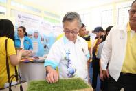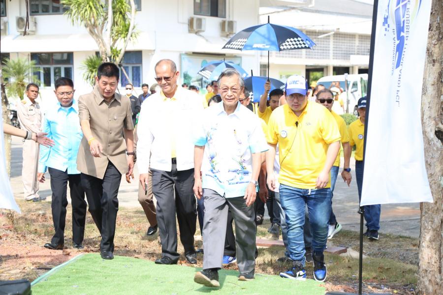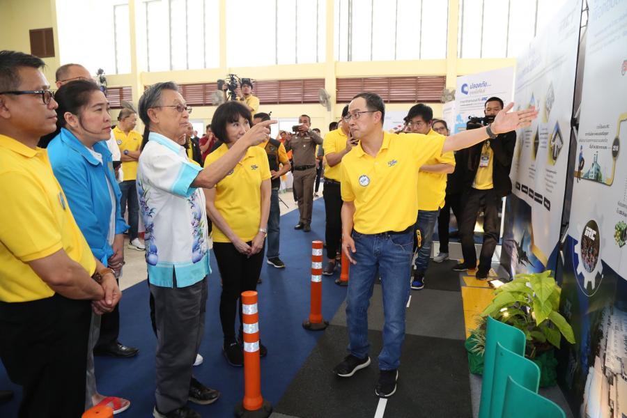 นายชวน หลีกภัย ประธานรัฐสภาและประธานสภาผู้แทนราษฎร ชมนิทรรศการลานกีฬาเอนกประสงค์และสวนสุขภาพจากยางพารา
