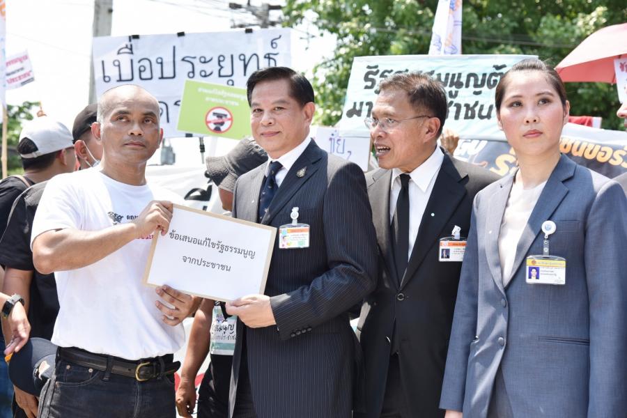 นายพีระพันธุ์ สาลีรัฐวิภาค ประธานคณะ กมธ.วิสามัญพิจารณาศึกษาปัญหา หลักเกณฑ์ และแนวทางการแก้ไขเพิ่มเติมรัฐธรรมนูญแห่งราชอาณาจักรไทย พุทธศักราช ๒๕๖๐ และคณะ รับยื่นหนังสือ