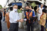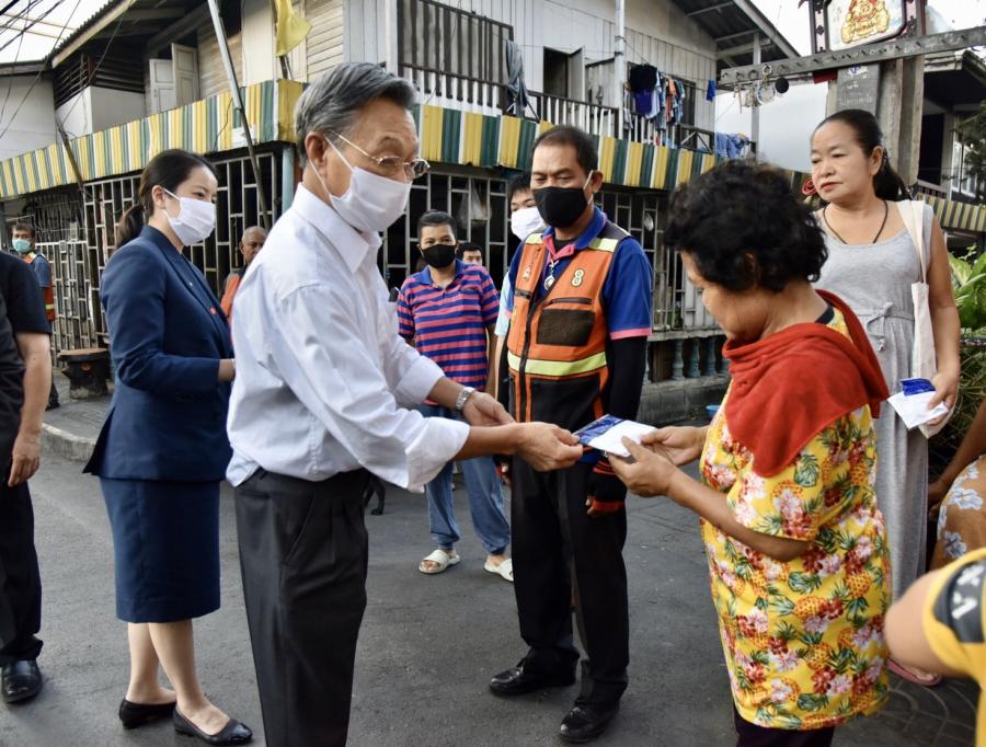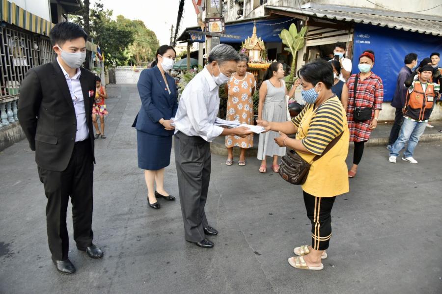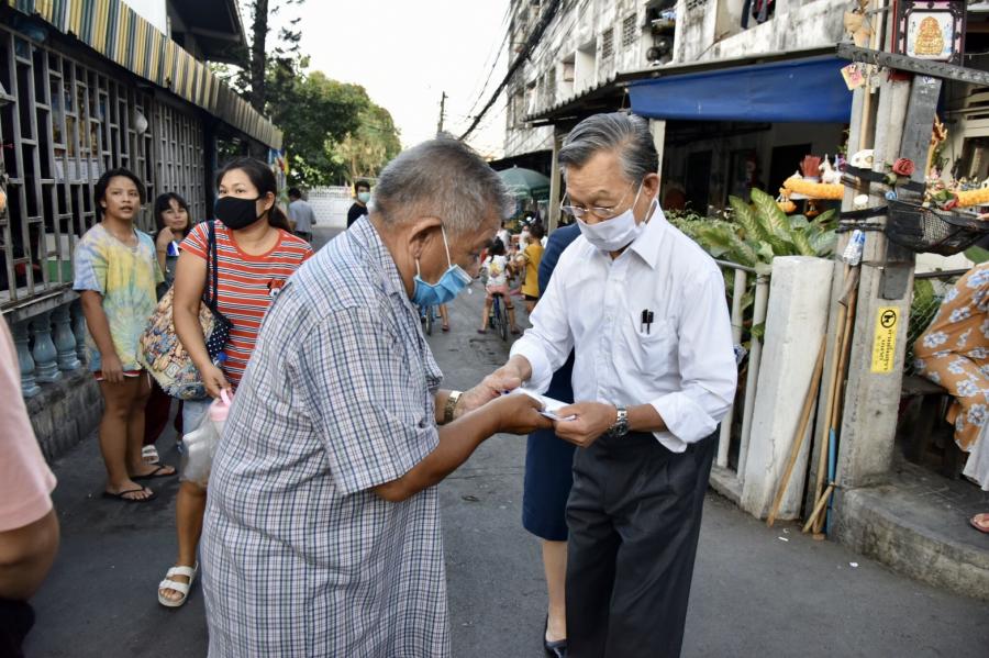 จากนั้นในเวลา ๑๘.๐๐ นาฬิกา มอบหน้ากากให้แก่ประชาชนที่พักอาศัยบริเวณ