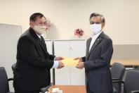 ประธานสภาผู้แทนราษฎร รับมอบเงินบริจาคจากที่ปรึกษากิตติมศักดิ์ รองประธานสภาผู้แทนราษฎร คนที่สอง เพื่อสนับสนุนการจัดซื้ออุปกรณ์การแพทย์ให้แก่โรงพยาบาลตรัง จังหวัดตรัง เพื่อช่วยเหลือสถานการณ์การแพร่ระบาดของเชื้อโควิด-๑๙
