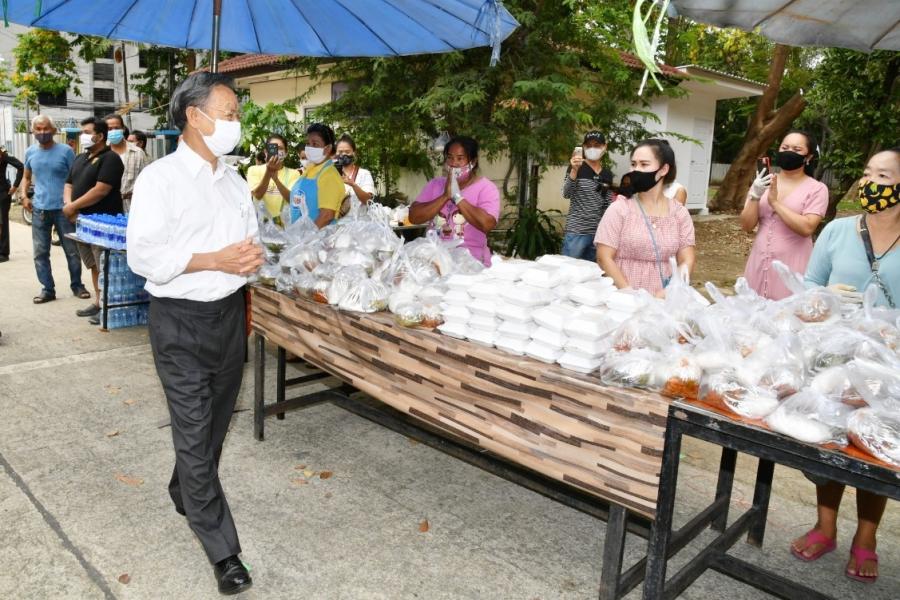 นายชวน หลีกภัย ประธานรัฐสภา และประธานสภาผู้แทนราษฎร จัดอาหารเย็นจำนวน ๖๐๐ ชุด เพื่อแจกจ่ายให้แก่ประชาชนในชุมชนซอยหมอเหล็ง