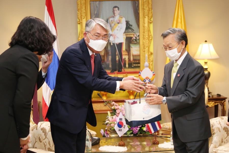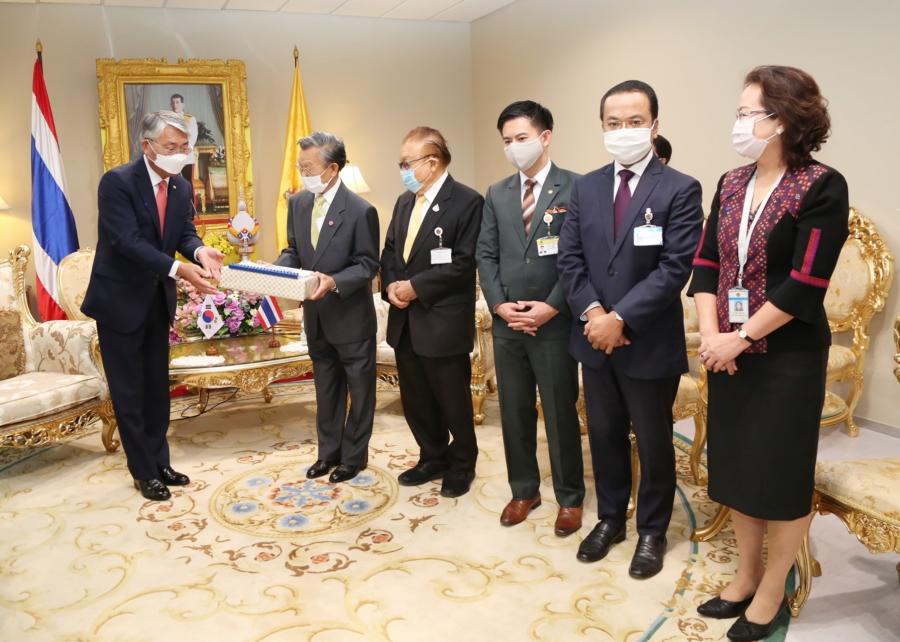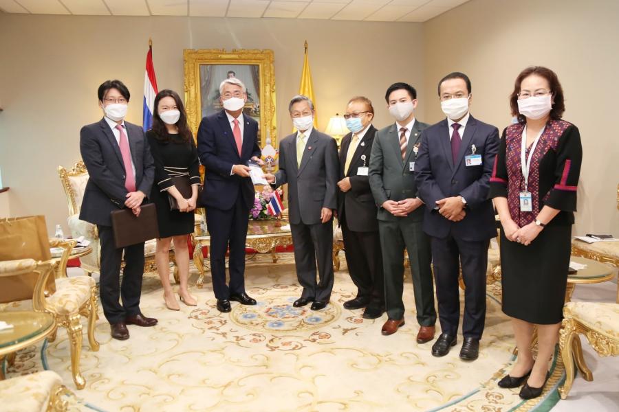 ในโอกาสนี้ เอกอัครราชทูตฯ ได้กล่าวชื่นชมประเทศไทยที่สามารถแก้ไขปัญหา การแพร่ระบาดของไวรัสโควิด ๑๙ ได้เป็นอย่างดีทั้งนี้ ได้มีการแลกเปลี่ยนข้อมูล ตลอดจนนโยบายต่าง ๆ ที่รัฐบาลสาธารณรัฐเกาหลีดำเนินการแก้ไขการแพร่ระบาด