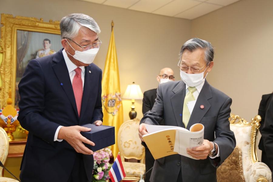 ของไวรัสโควิด-๑๙ ของทั้งไทยและเกาหลีดีขึ้นเป็นลำดับ และขอถือโอกาสนี้ เชิญประธานรัฐสภา และประธานสภาผู้แทนราษฎรไปเยือนสาธารณรัฐเกาหลี หลังสถานการณ์การแพร่ระบาดของเชื้อไวรัสโควิด ๑๙ ผ่านพ้นวิกฤตแล้ว |