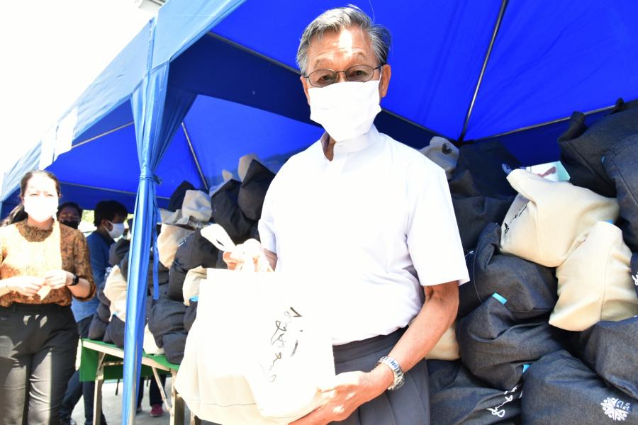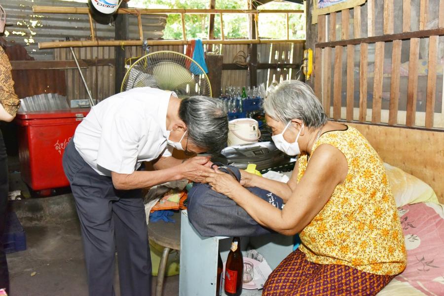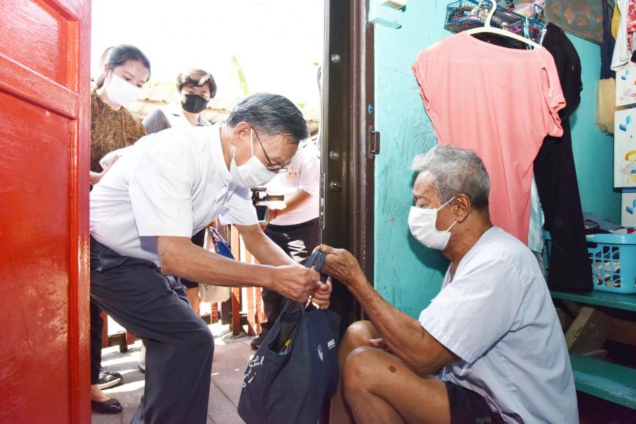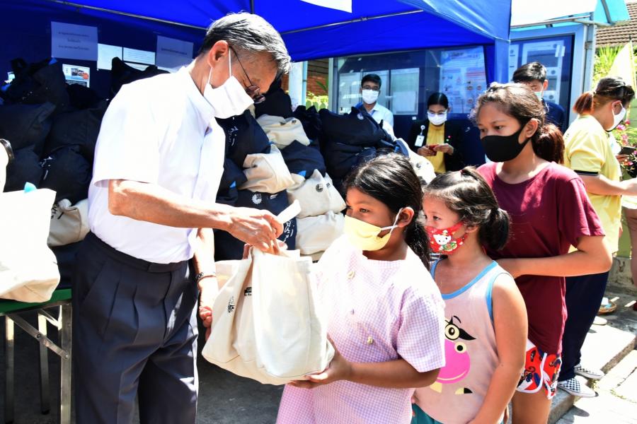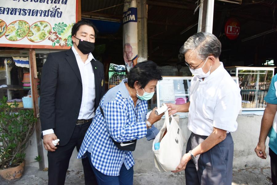 แจกถุงยังชีพ จำนวน ๔๐๐ ถุง โดยได้มอบหมายให้