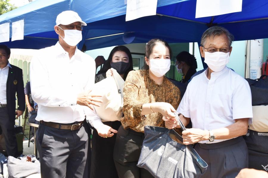 ประธานรัฐสภาและประธานสภาผู้แทนราษฎร แจกถุงยังชีพ จำนวน ๔๐๐ ถุง