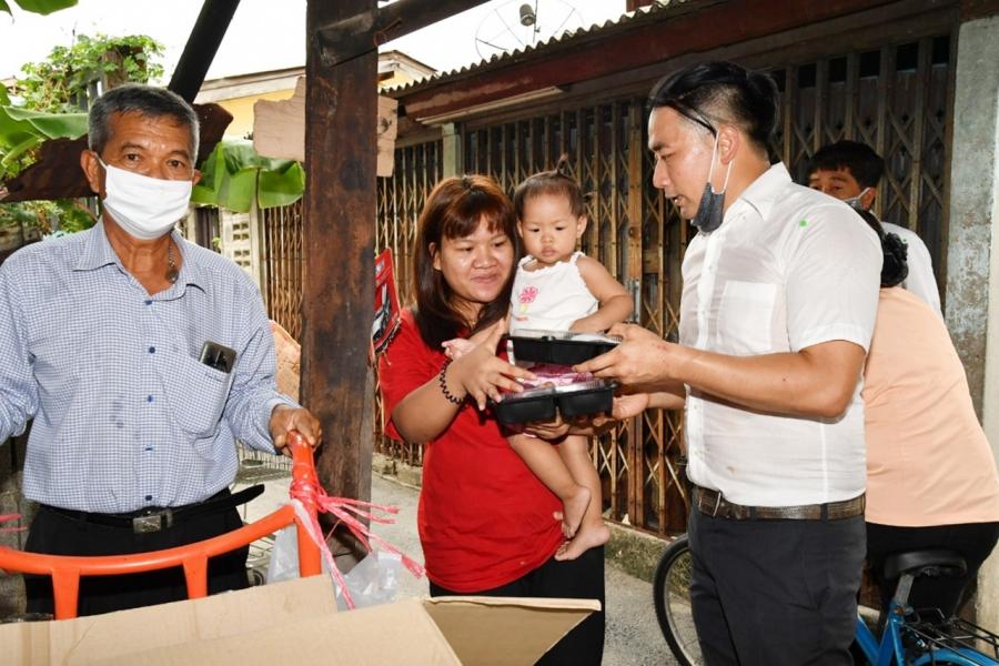 ประธานสภาผู้แทนราษฎร มอบหมายให้ นายแทนคุณ จิตต์อิสระ เลขานุการคณะทำงานทางการเมืองของประธานสภาผู้แทนราษฎร นำข้าวกล่องที่ได้รับมอบจาก ดร.อมร มีมะโน ผู้ก่อตั้ง บมจ.เอเจ แอดวานซ์ เทคโนโลยี และกลุ่มนักธุรกิจ จีน - ไทยพี่น้องกัน มอบให้แก่ประชาชนในชุมชนพัฒนาใต้