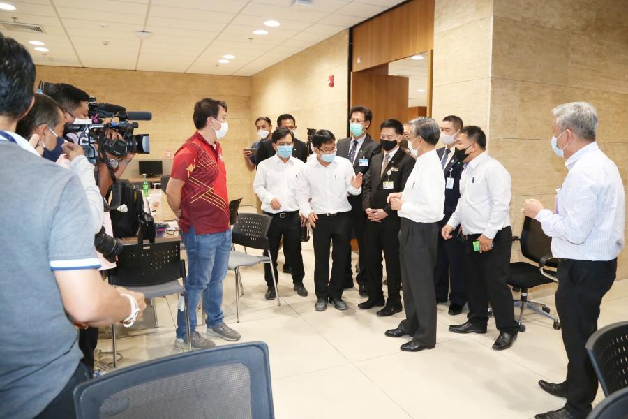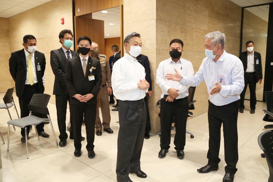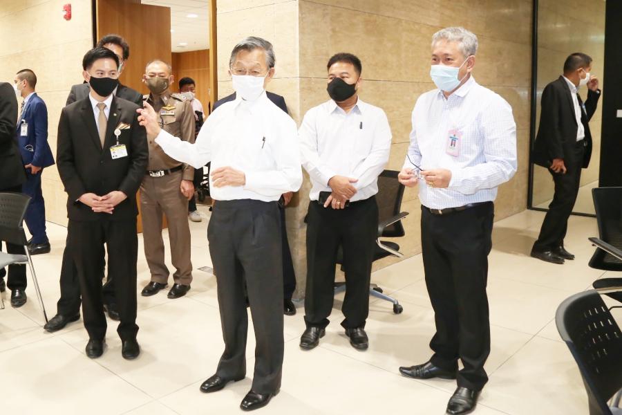 ประธานสภาผู้แทนราษฎร พร้อมด้วย เลขาธิการสภาผู้แทนราษฎร และผู้บริหารสำนักงานเลขาธิการสภาผู้แทนราษฎร ตรวจความเรียบร้อยห้องแถลงข่าว และห้องทำงานสื่อมวลชนประจำรัฐสภา