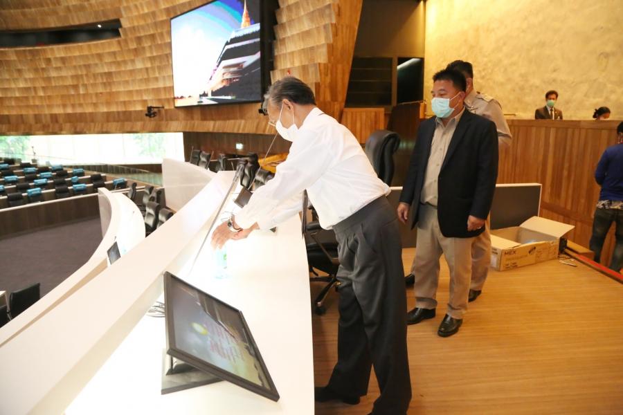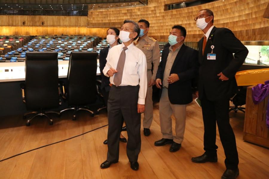 ประธานสภาผู้แทนราษฎร พร้อมด้วยคณะทำงาน และคณะผู้บริหาร สำนักงานเลขาธิการสภาผู้แทนราษฎร ร่วมตรวจความเรียบร้อยของห้องประชุมพระสุริยัน ห้องทำงานประธานสภาผู้แทนราษฎรบริเวณหลังบัลลังก์ และการจัดห้องอาหารสำหรับสมาชิกสภาผู้แทนราษฎร