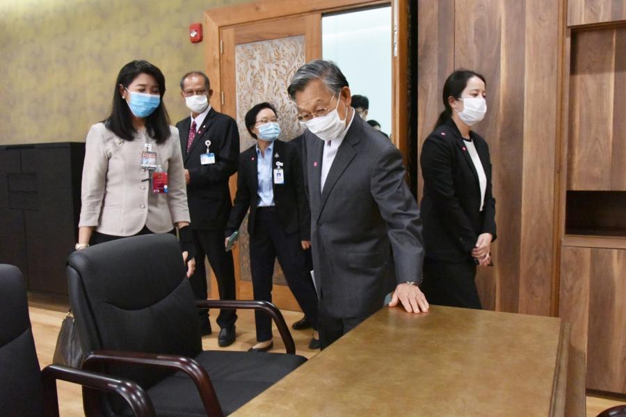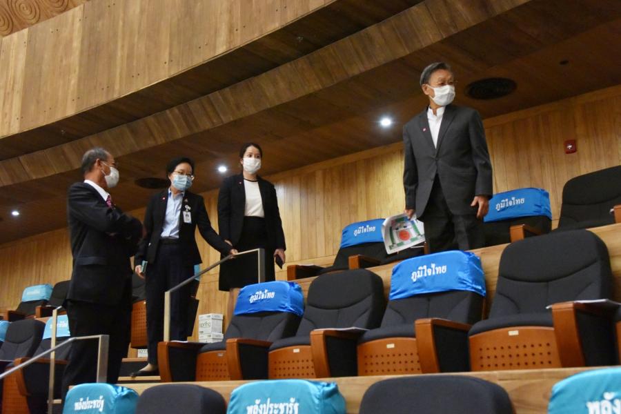 ประธานสภาผู้แทนราษฎร พร้อมด้วยคณะทำงานประธานสภาผู้แทนราษฎรและคณะผู้บริหารสำนักงานเลขาธิการสภาผู้แทนราษฎร ตรวจความเรียบร้อยห้องพักนายกรัฐมนตรีและคณะรัฐมนตรีห้องประชุม พระสุริยัน