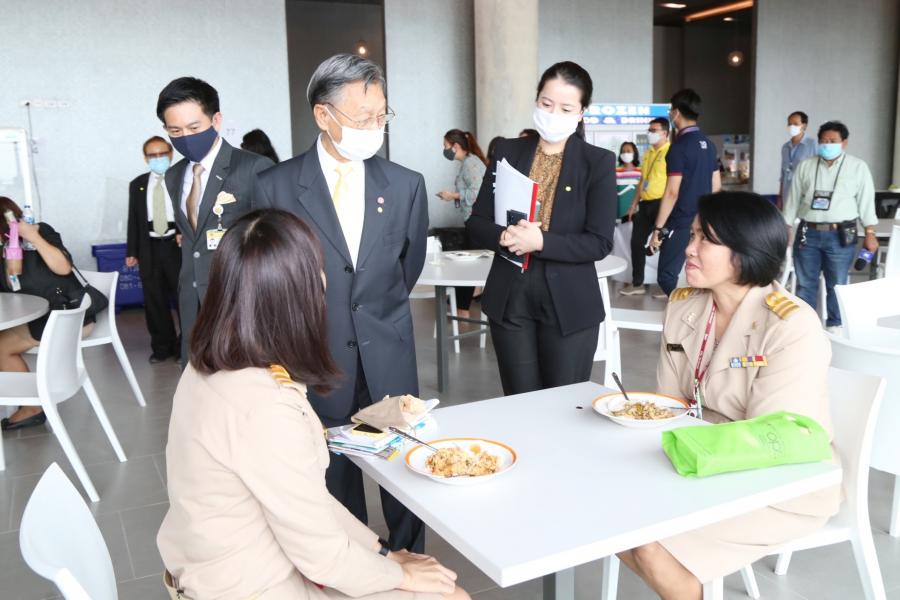 ประธานสภาผู้แทนราษฎร ตรวจความเรียบร้อยและพบปะพูดคุยกับพ่อค้าแม่ค้า ผู้จำหน่ายอาหารภายในบริเวณห้องอาหารรัฐสภา