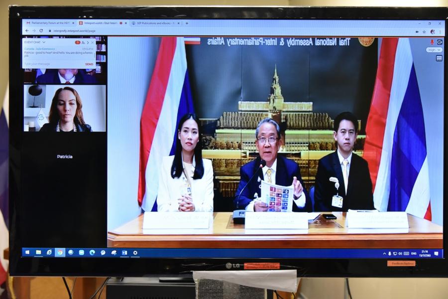 ประธานรัฐสภาและประธานสภาผู้แทนราษฎร ร่วมรับฟังการประชุมภาครัฐสภาในโอกาสการประชุมเวทีหารือทางการเมืองระดับสูงของสหประชาชาติว่าด้วยการพัฒนาที่ยั่งยืนปี ๒๕๖๓
