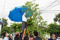 ได้ตัดแต่งกิ่งต้นยมชวน ซึ่งได้ปลูกเป็นที่ระลึกกับอาคารรัฐสภาแห่งใหม่