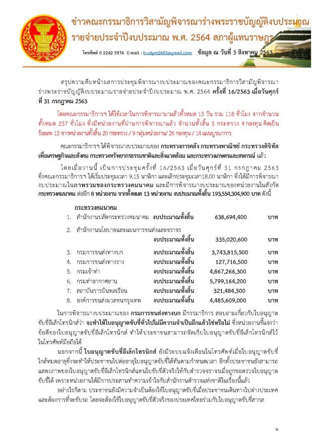 กมธ. ได้พิจารณางบประมาณในภาพรวมของกระทรวงคมนาคม และหน่วยงานในสังกัดต่ออีก